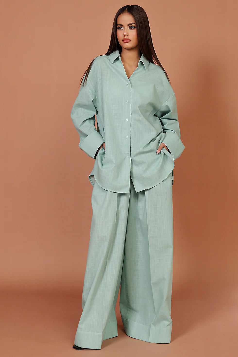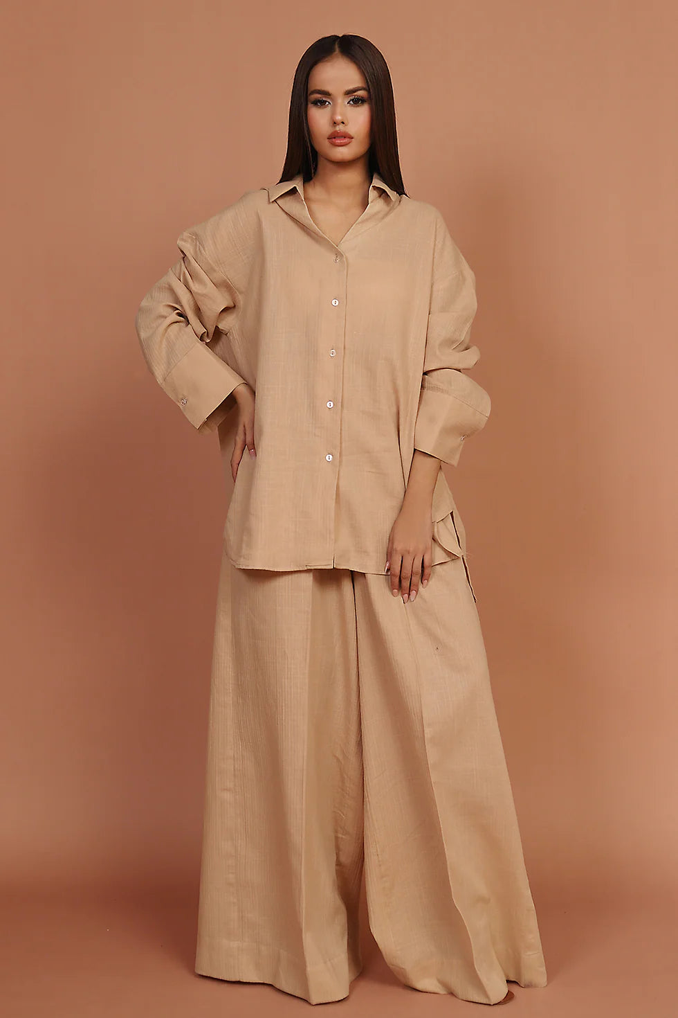 L'automne appelle à allier style et confort. L' ensemble Aveline vous prépare en un clin d'œil : un chemisier fluide et un pantalon large qui épousent vos mouvements avec aisance et mettent en valeur votre silhouette.